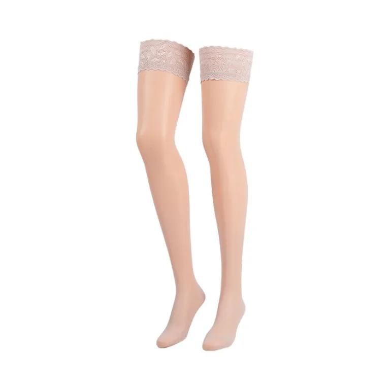 Outlet Calypso 140den Schenkelstrümpfe Größe 3 Spitzenhaftband sandel, 2 St Stütz- Und Reisestrümpfe
