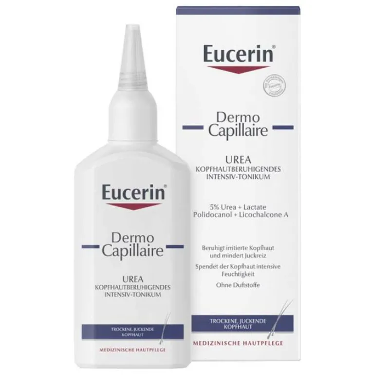 Das Eucerin DermoCapillaire Urea Kopfhautberuhigende Intensiv-Tonikum beruhigt irritierte Kopfhaut und mildert den Juckreiz. Es spendet der Kopfhaut intensive Feuchtigkeit und eignet sich mit seiner milden Formel auch zur Pflege von empfindlicher Kopfhaut sowie bei Neurodermitis und Psoriasis.