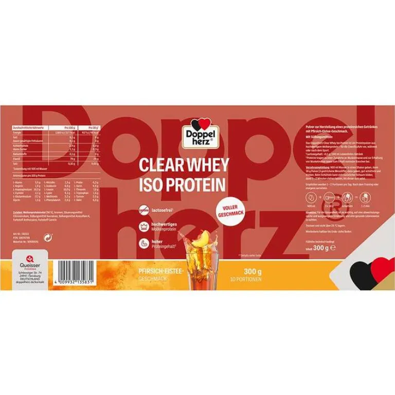 Outlet Doppelherz Clear Whey Iso Protein Pfirsich-Eistee, 300 g Eiweiß