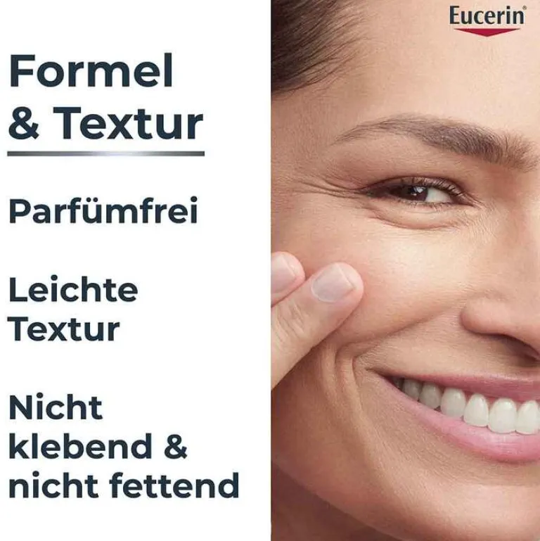 - Für zusätzlichen Sonnenschutz insbesondere bei längerer Sonneneinstrahlung tagsüber das Eucerin® Photoaging Control Face Sun Fluid LSF 50+ auftragen, um die Haut umfassend vor UV-bedingter Hautalterung zu schützen