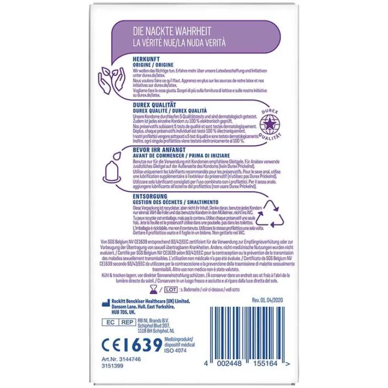 Bitte lesen Sie die Information im Inneren der Packung, insbesondere, wenn Sie Kondome für Anal- oder Oralsex verwenden.