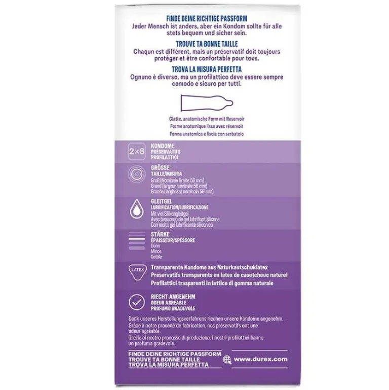 Die Durex extra feucht Kondome sind hauchzart und extra befeuchtet für eine bessere Gleitfähigkeit.