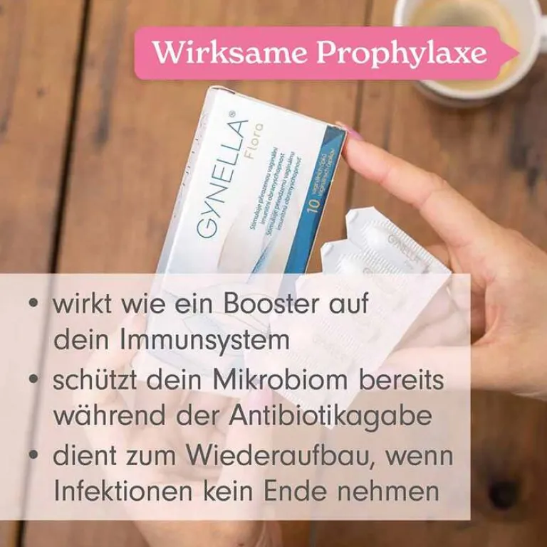 Das Vaginalsystem wird durch verschiedene Mikroorganismen charakterisiert, die als natürlicher Schutz agieren. Die Bakterienflora der Vaginalschleimhaut besteht hauptsächlich aus Milchsäurebakterien (Laktobazillen) die in einem ausgewogenen Gleichgewicht vorliegen. Wird dieses Gleichgewicht gestört, kann dies zum Ausbruch von Krankheiten führen. Die ausgewählten, tyndallisierten Lactobazillus- Stämme in Gynella Flora helfen Ihnen, Ihre natürlichen Abwehrkräfte zu stimulieren, wenn diese durch Medikamente wie Antibiotika, Schwangerschaft oder Erkrankungen des Vaginalbereichs (Ausfluss, Entzündungen, Infektionen) in Mitleidenschaft gezogen oder zerstört wurden.
