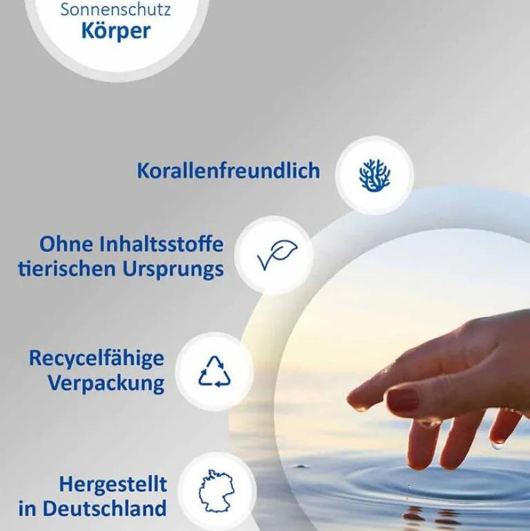 Dank der praktischen Sprayflasche ist das Sonnenschutz-Spray einfach anzuwenden (sprühen über Kopf möglich) und eignet sich ideal für unterwegs. Es ist transparent und hinterlässt keine Rückstände. Zudem ist es schweißresistent, wasserfest und korallenfreundlich, was es zum idealen Begleiter für den nächsten Ausflug oder Urlaub macht.