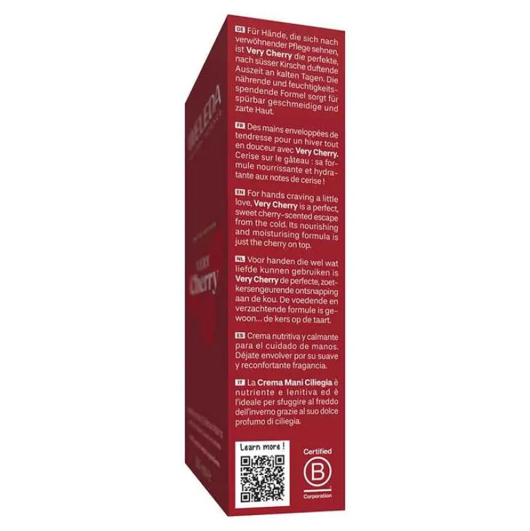 Verwöhnen Sie Ihre Hände mit der Very Cherry Handcreme und reichhaltiger Pflege – und schwelgen Sie in ihrem unwiderstehlich fruchtigen Duft! Die Formel mit 100 % natürlichen Inhaltsstoffen, wie Bio-Sheabutter und Bio-Sesamöl, cremt Ihre Hände streichelzart. Sie spendet intensiv Feuchtigkeit, nährt und hinterlässt ein samtiges und geschmeidiges Hautgefühl.
