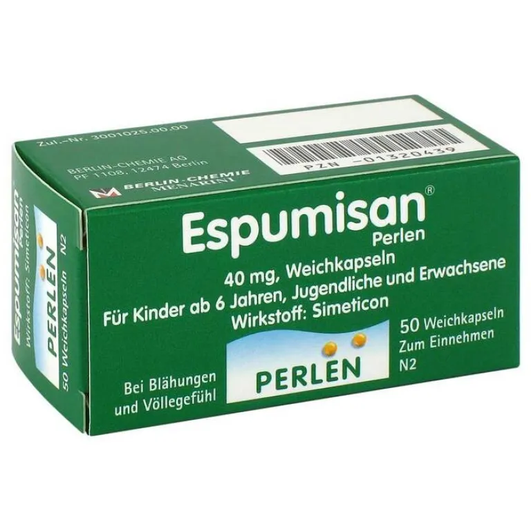 1 Weichkapsel Espumisan Perlen enthält 40 mg Simeticon.
