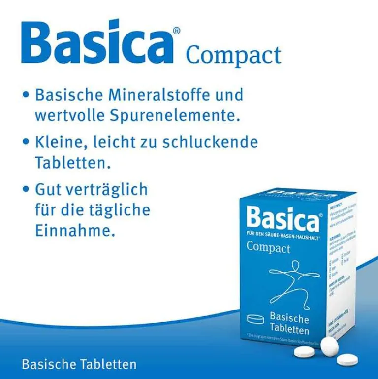 Basica Compact® sind kleine, leicht zu schluckende Tabletten. In der praktischen Dose ideal zum Mitnehmen.