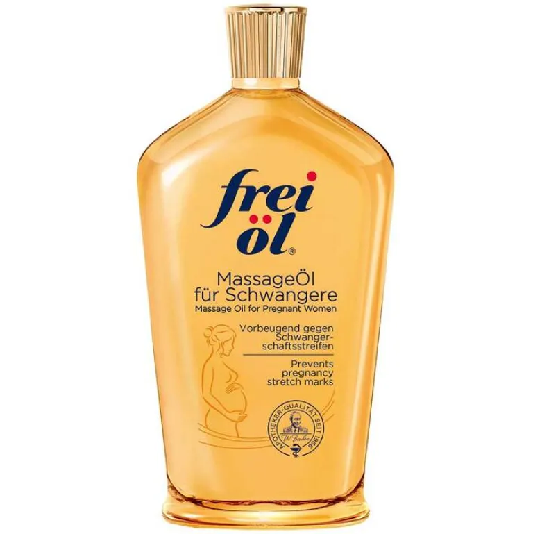 Das reichhaltige Frei Öl Massage Öl für Schwangere ist legendär. Mit der seit vielen Jahren bewährten Öl-Komposition aus hochwirksamen Inhaltsstoffen und natürlichen Ölen kann der Entstehung von Schwangerschaftsstreifen effektiv vorgebeugt werden. Gleichzeitig bleibt die Haut wunderbar elastisch und kann sich gut dehnen, während das Baby wächst. Das Öl zieht gut ein und die pflegenden Komponenten helfen zusätzlich, die Haut zu beruhigen. Mit zartem Vanilleduft.