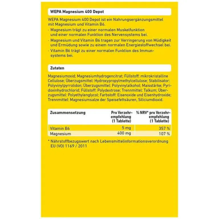 Schreibe die erste Bewertung für „Sale Magnesium 400 Depot + B6 Tabletten, 60 St Vitamin B6 (Pyridoxin)|Magnesium“ Antworten abbrechen
