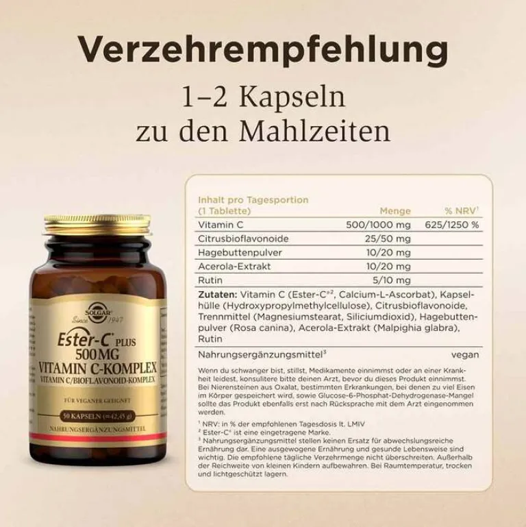 Schreibe die erste Bewertung für „Sale Solgar Ester-C plus 500 mg Kapseln, 50 St Vitamin C (Ascorbinsäure)“ Antworten abbrechen