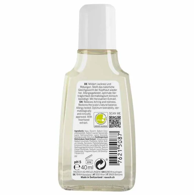 Rausch Sensitive-Shampoo mit Herzsamen reinigt besonders mild und mildert dabei Juckreiz und Rötungen. Sein wertvoller präbiotischer Wirkstoff und ein physiologischer pH-Wert stellen das Gleichgewicht der Kopfhaut wieder her. Es ist allergiegetestet, frei von jeglichen Farbstoffen und Sulfaten und sorgt für eine optimale Verträglichkeit, die dermatologisch-klinisch bestätigt ist.