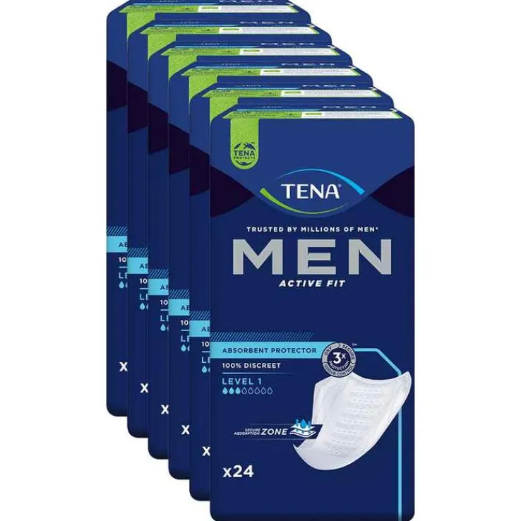 Spezielle Einlagen, die Urin sicher aufsaugen und die Geruchsbildung verhindern, bieten für Betroffene wirksame Soforthilfe. TENA® MEN ACTIVE FIT Level 1 Einlagen sind speziell auf die männliche Anatomie abgestimmt und bieten idealen Schutz bei Nachtröpfeln durch Inkontinenz. Die Protektoren sitzen dank elastischen Seitenbündchen diskret und passgenau in der Unterwäsche und sind daher angenehm zu tragen.