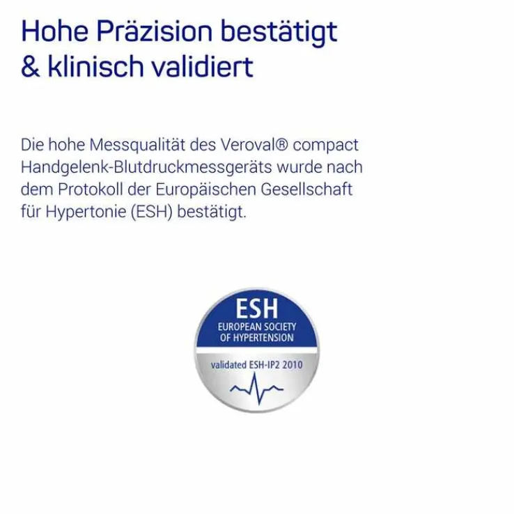 - Hohe Präzision bestätigt: nachgewiesen hohe Messqualität mit dem Qualitätssiegel der Europäischen Gesellschaft für Hypertonie (ESH) ausgezeichnet.