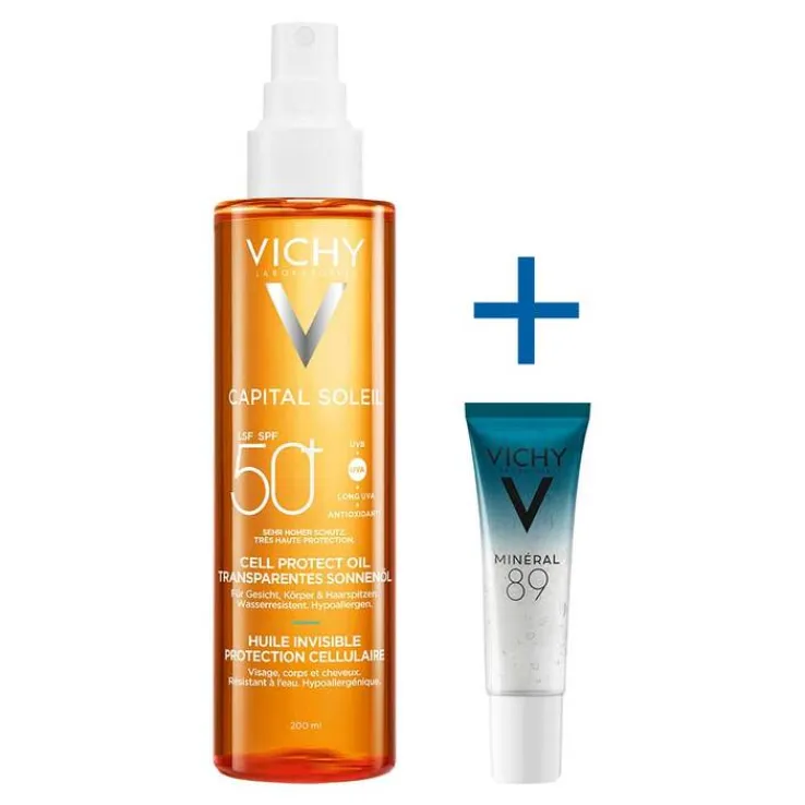 Das Vichy Capital Soleil Cell Protect Oil LSF 50 ist ein transparentes Sonnenöl von Vichy, das der Haut einen wunderschönen Glow verleiht und sie gleichzeitig vor UVA- und UVB-Strahlen schützt.
