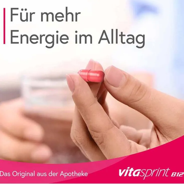 vitasprint B12 Kapseln. Wirkstoff: Cyanocobalamin (Vitamin B12), (RS)-2-Amino-3-(phosphonooxy)propansäure (DL-Phosphonoserin), Glutamin. Anwendungsgebiete: Traditionell angewendet zur Besserung des Allgemeinbefindens. Freiverkäuflich. Stand: 11/2020. Zu Risiken und Nebenwirkungen lesen Sie die Packungsbeilage und fragen Sie Ihre Ärztin, Ihren Arzt oder in Ihrer Apotheke.